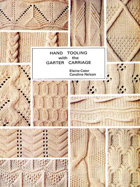 24 distinctive designs which have been knitted using the garter carriage and hand manipulating of the stitches.